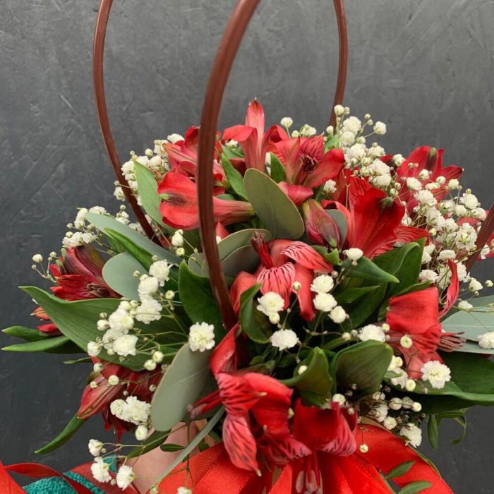 Альстромерии с гипсофилой в сумочке
