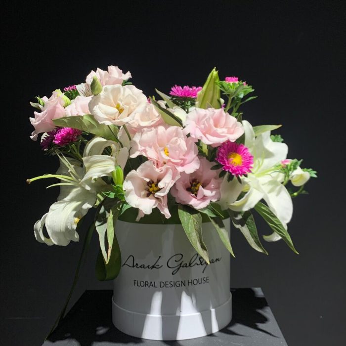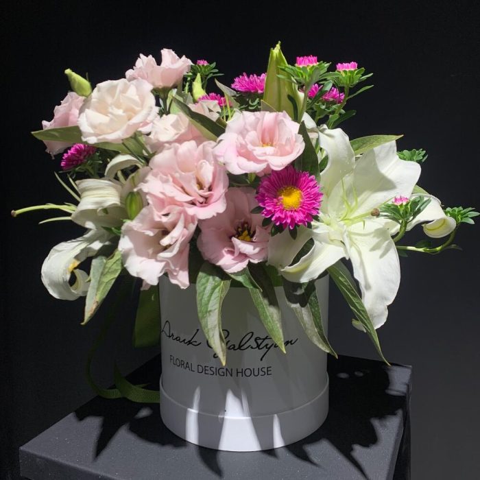 Альстромерии, Гортензии, Кустовые розы, Лизиантусы, Розы, Хризантемы