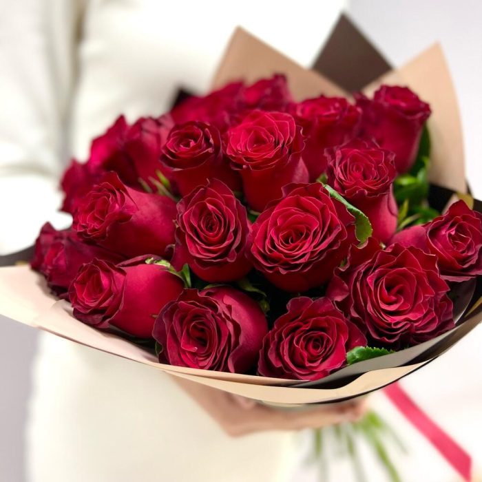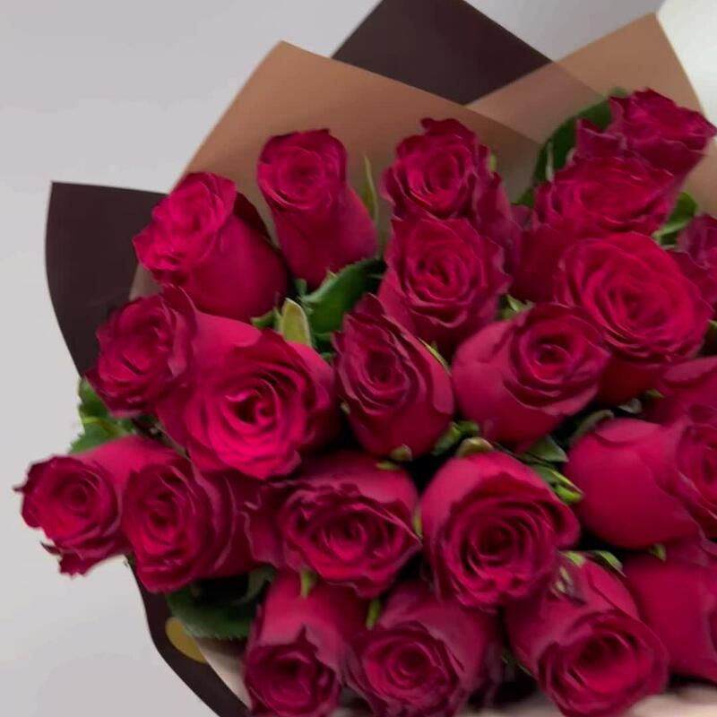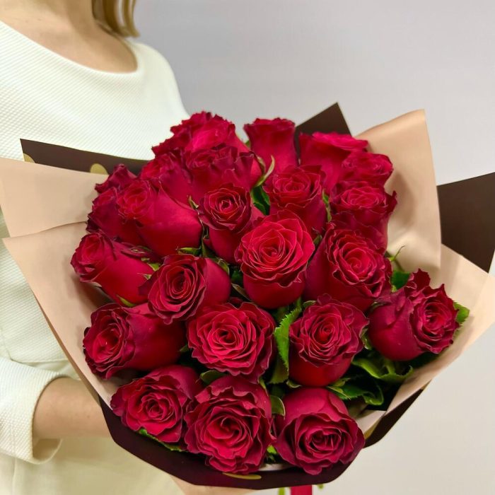 25 Бордовых роз 50 см в упаковке CRAFT PREMIUM