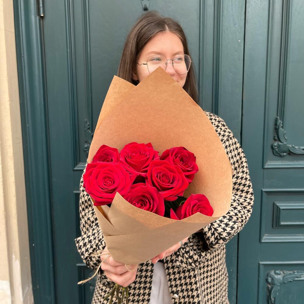 7 красных роз в крафте