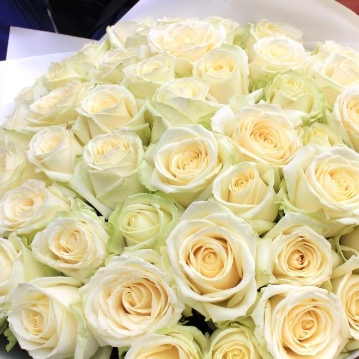 Роза Аваланж – 51 шт.Лента атласная – 1 шт.упаковочный материал – 3 шт.