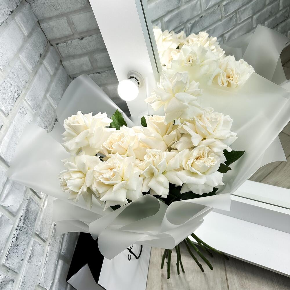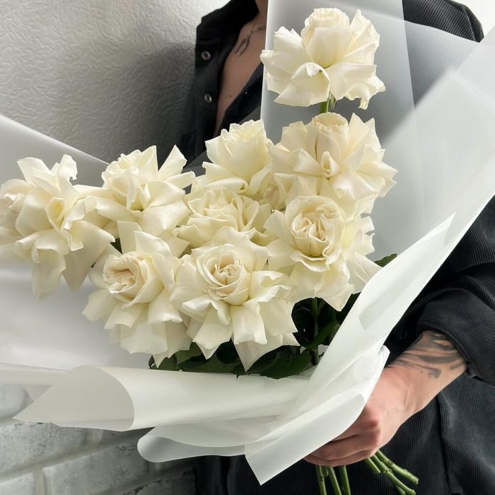 Лента атласная – 1 шт.Пленка матовая – 3 шт.подкормка для срезанных цветов – 1 шт.инструкция по уходу за цветами – 1 шт.роза плайя бланка – 9 шт.