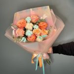 Букет с персиковой розой “Морозная нежность”
