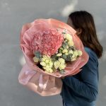 Гортензия – 1 шт. Кустовая роза – 7 шт. Эвкалипт – 2 шт.