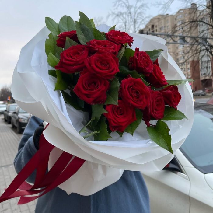 Пленка матовая – 6 шт.Салал пучок – 1 шт.Красная роза россия – 15 шт.